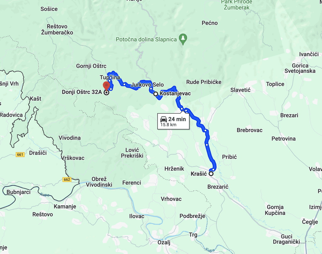 Iz smjera Zga pristupite Krašiću (preko Jastrebarskog, auto-cestom ZG-KA, ili starom Karlovačkom cestom). Za točan put od Krašića pratite ovu rutu